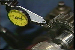 次にダイヤルゲージで振れを確認しながら、歯車をジグに取り付けます。